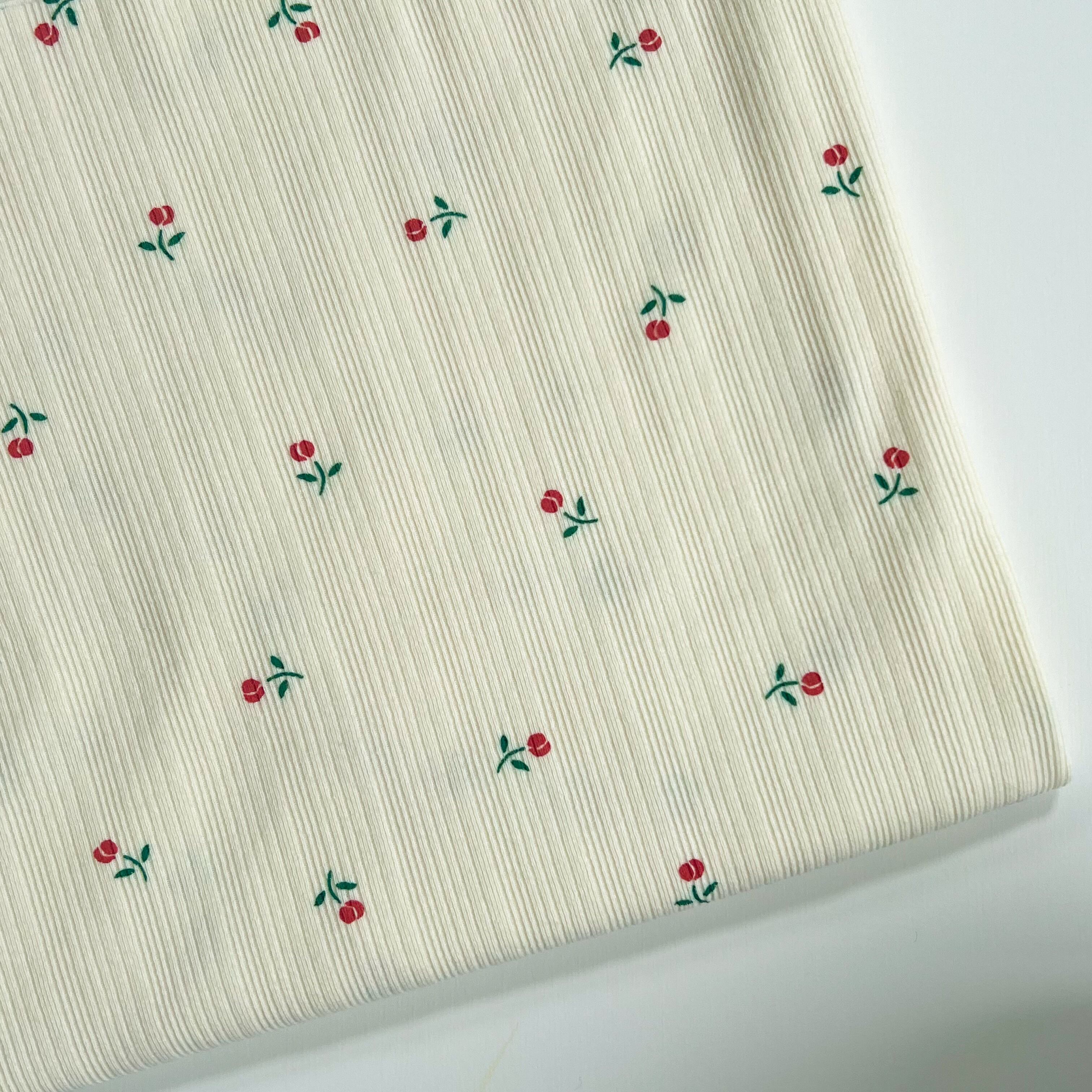 【即納ハギレ】44cm / リブニット / 花柄B / ホワイト