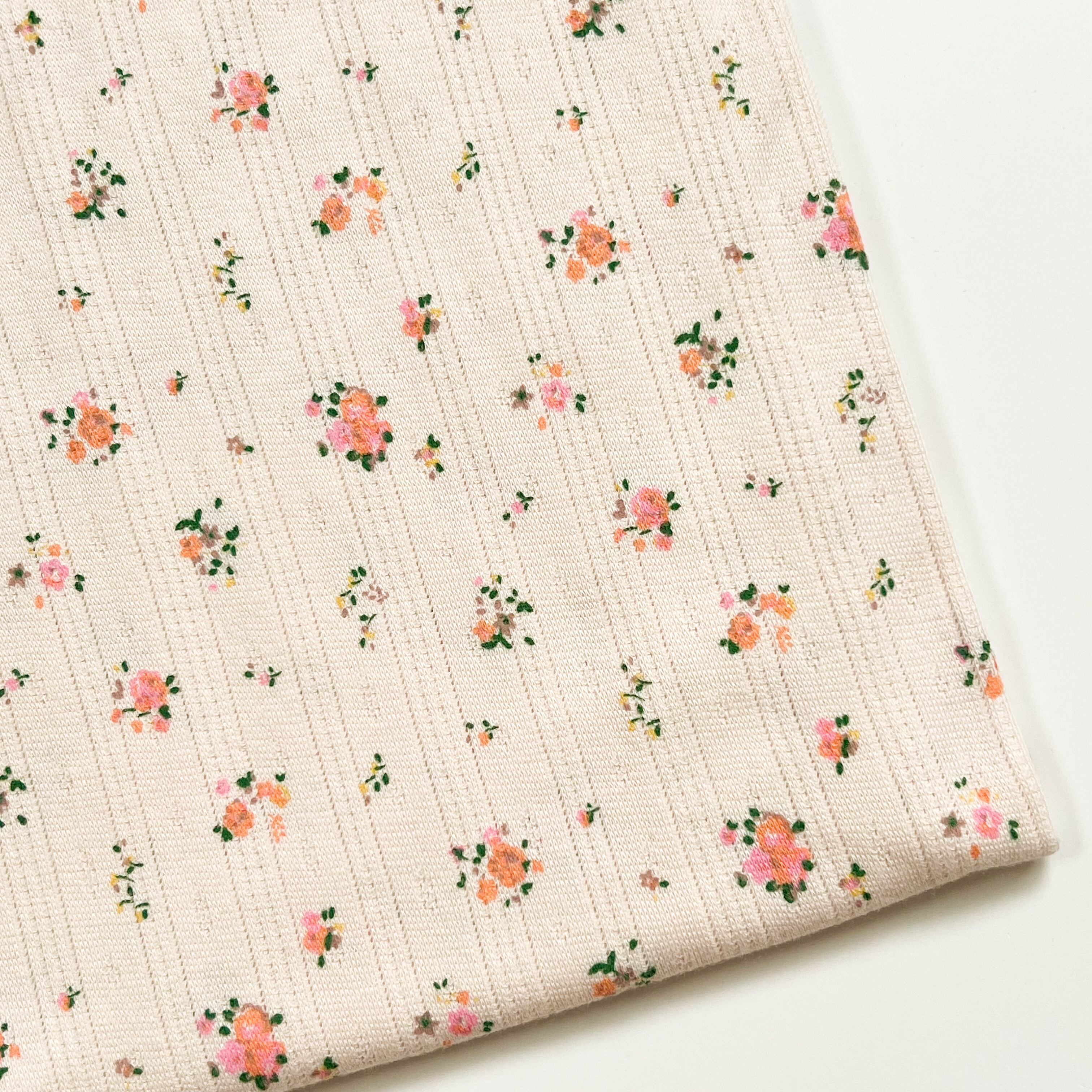 アイレットニットのおしゃれなデザインに、可愛いオレンジ、ピンク、黄色の小花が…♡