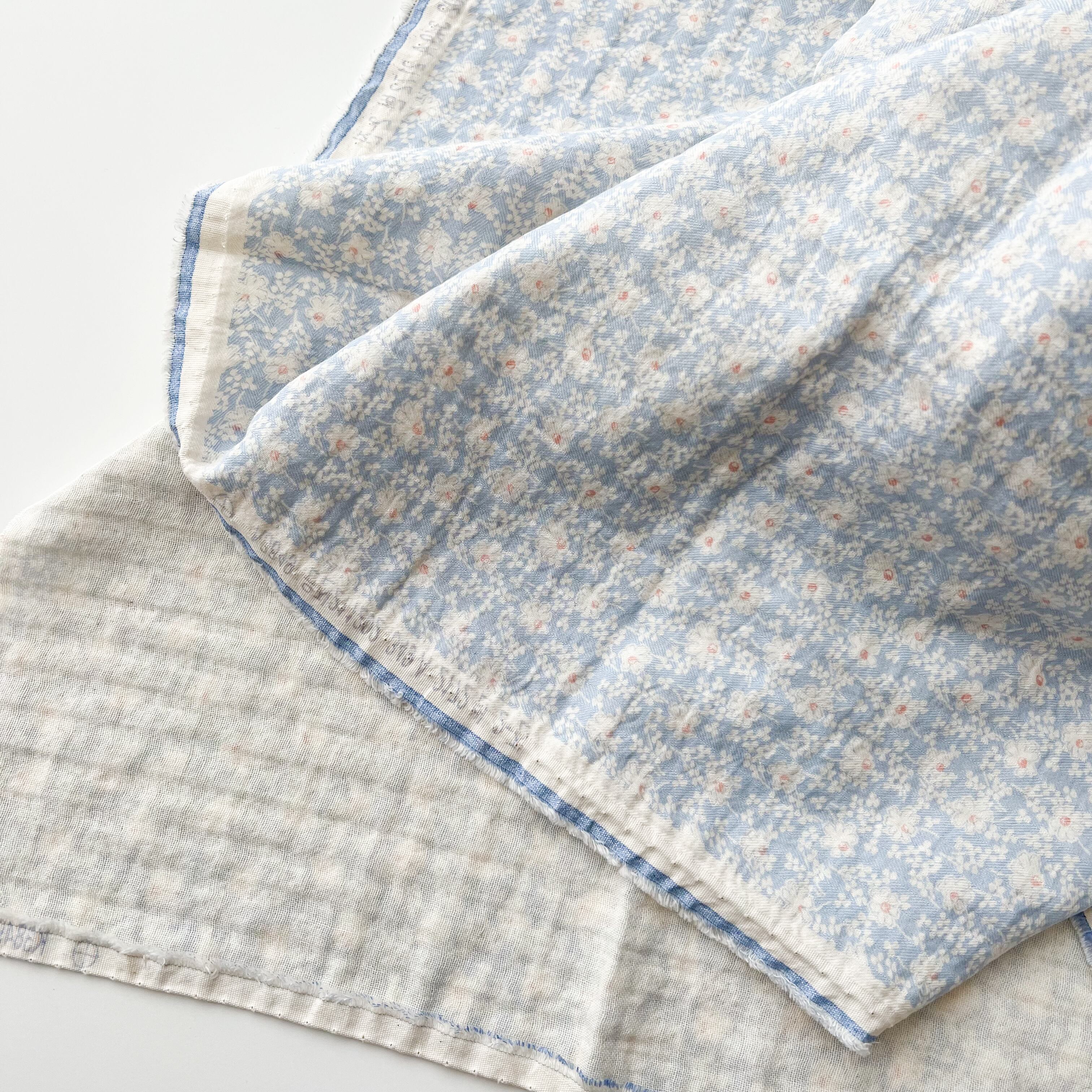 【即納ハギレ】37〜45cm / ダブルガーゼ / ヘリンボーンブルーフラワー